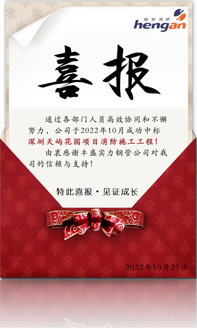 中標(biāo)“深圳天嶼花園項(xiàng)目消防施工工程”